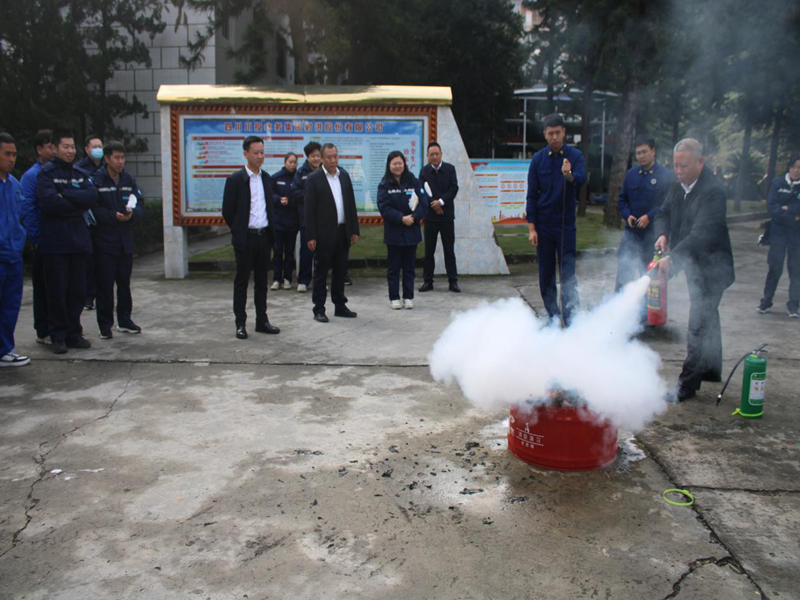 隨后,現(xiàn)場模擬火情,組織模擬消防逃生演練,現(xiàn)場演示講解干粉、二氧化碳和水基滅火器的使用方法和注意事項。