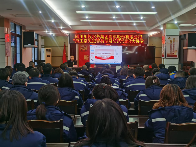 2月21日下午,川投水務射洪公司在三樓會議室開展“員工常見犯罪類型及防范”普法知識專題講座。此次講座由公司常年法律顧問張翠烈主講,公司領導班子、中層管理人員及各部門員工共80余人參加。