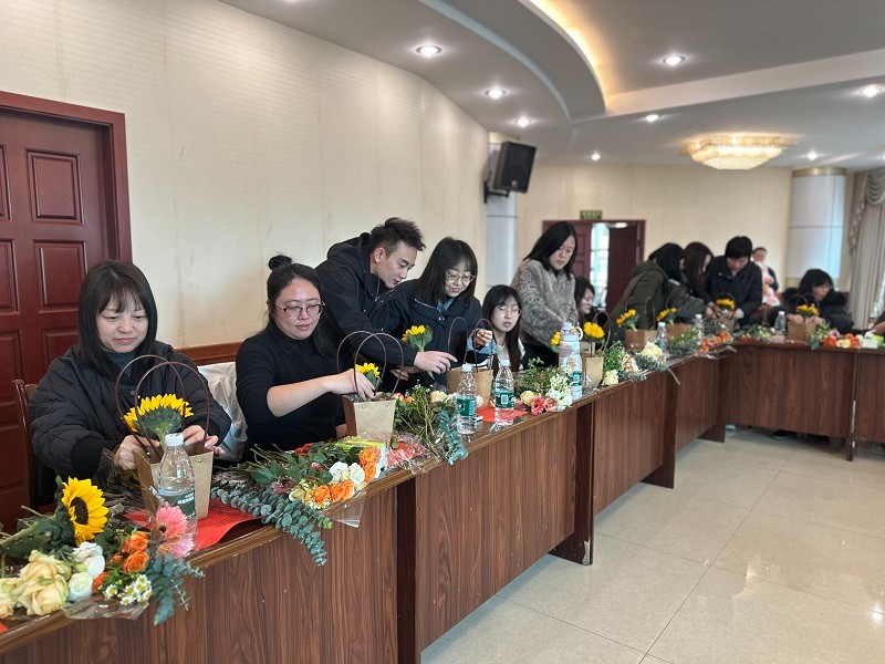 活動現場,花香四溢,氣氛溫馨。專業花藝老師為女性員工們詳細講解了插花的基本技巧、花卉的寓意以及日常養護方法。在老師的指導下,大家紛紛動手挑選花材、修剪枝葉、搭配色彩,用心創作屬于自己的花藝作品。每一束花都凝聚了女性員工們的巧思與創意,展現了她們對生活的熱愛與對美的追求。