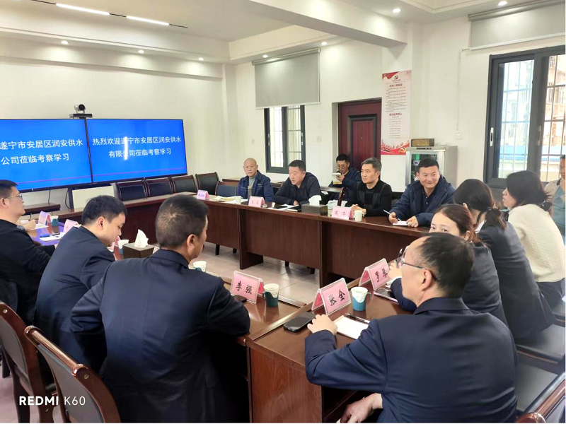 2025年3月24日,遂寧市安居區潤安供水有限公司董事長、總經理周志林率供水事業部、綜合管理部一行10人到中江公司參觀交流。