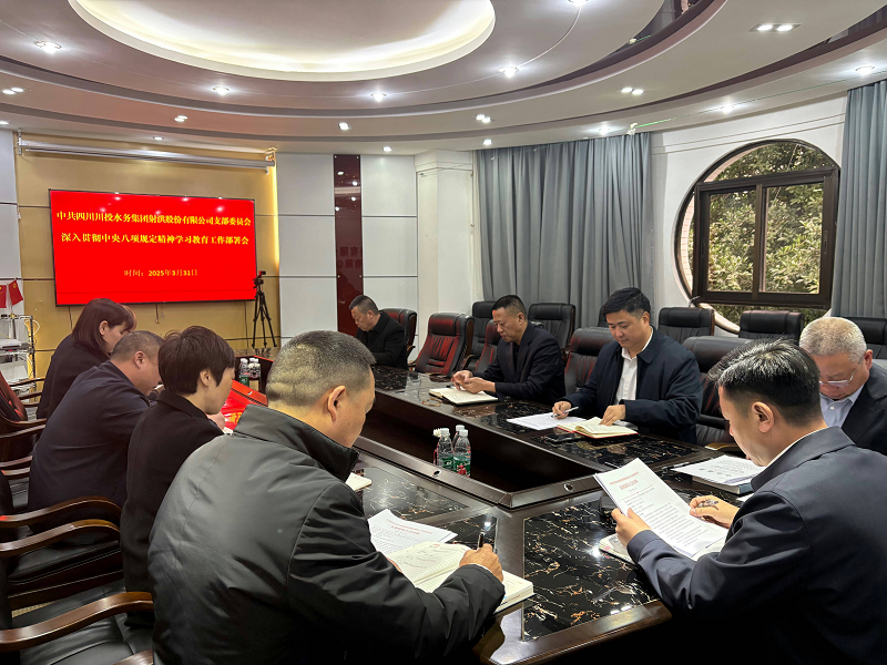 2025年3月31日,川投水務射洪公司黨支部召開深入貫徹中央八項規定精神學習教育工作部署會,公司領導班子及中層管理人員參加了會議。