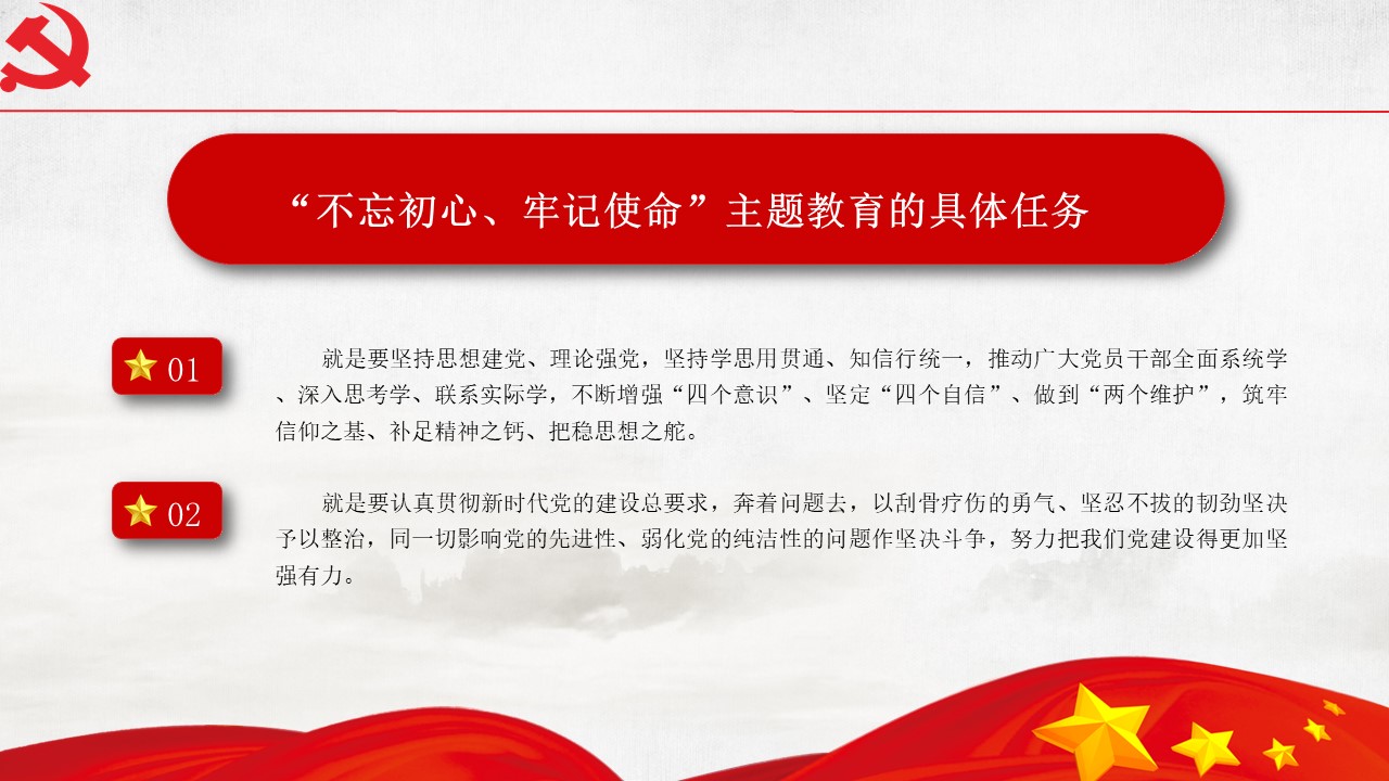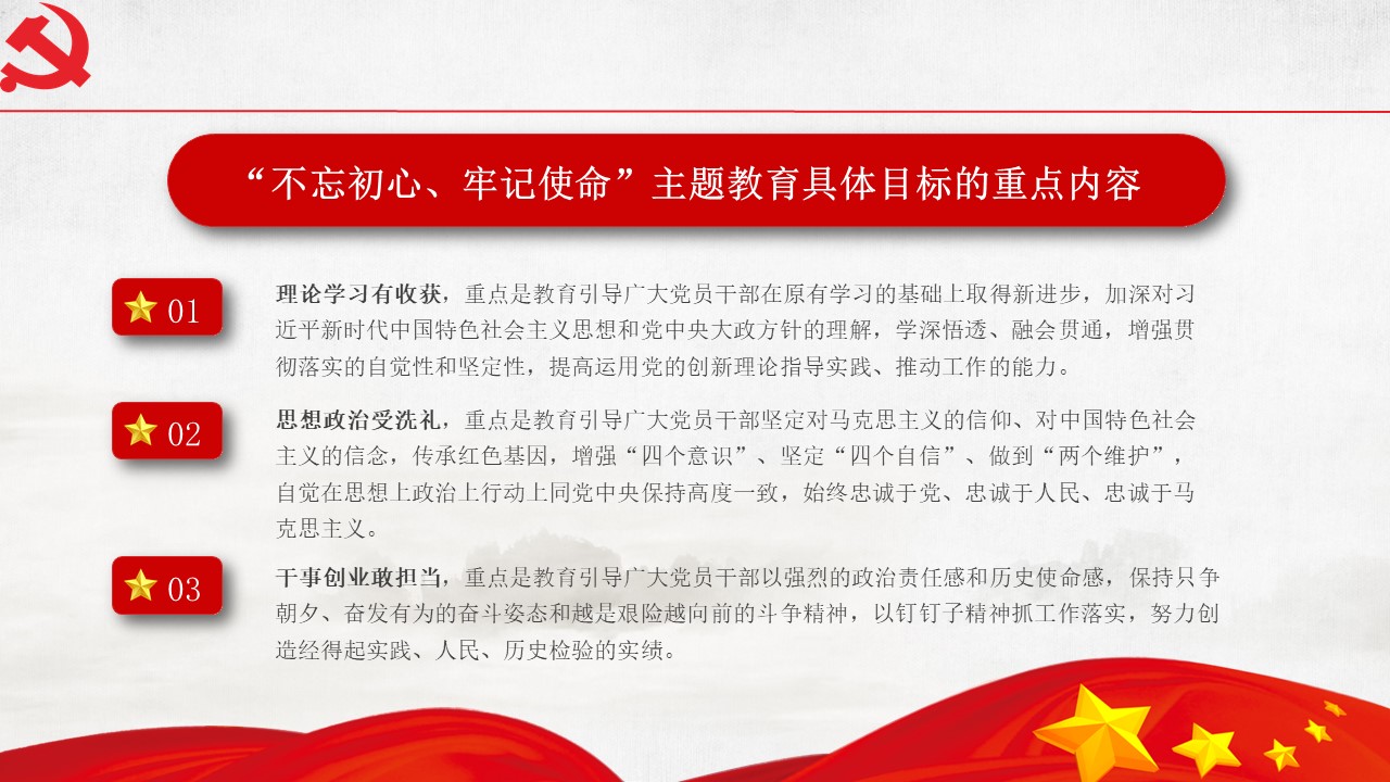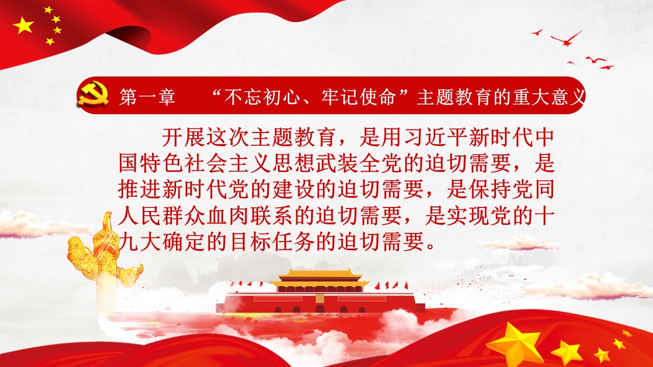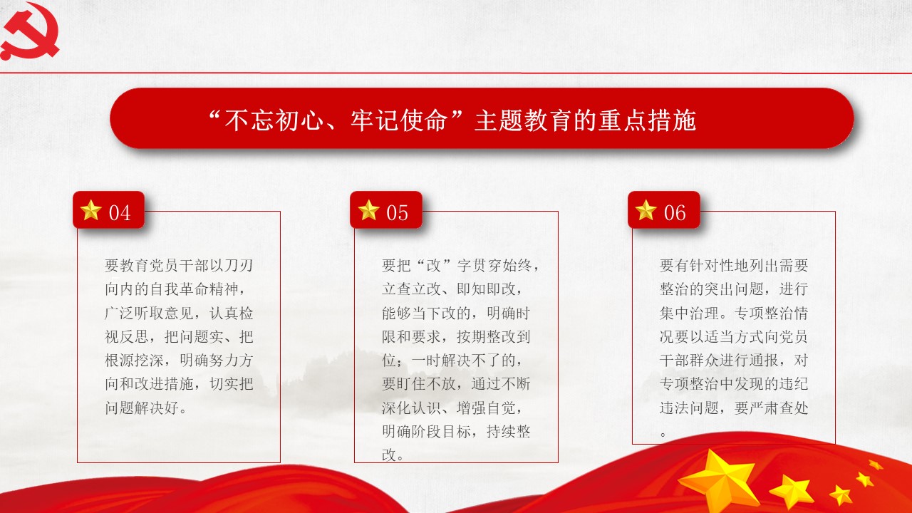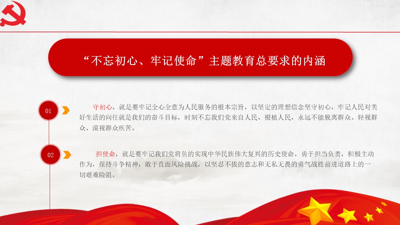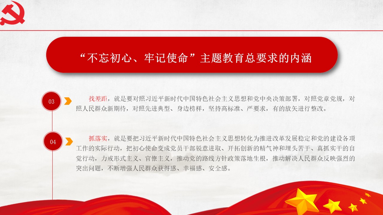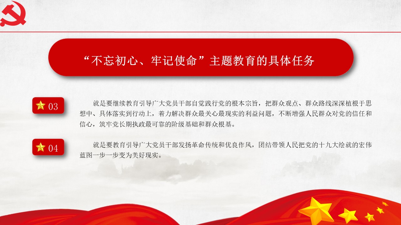 5月31日“不忘初心、牢記使命”主題教育工作會議31日在北京召開。中共中央總書記、國家主席、中央軍委主席習近平出席會議并發表重要講話。他強調,為中國人民謀幸福,為中華民族謀復興,是中國共產黨人的初心和使命,是激勵一代代中國共產黨人前赴后繼、英勇奮斗的根本動力。開展“不忘初心、牢記使命”主題教育,要牢牢把握守初心、擔使命,找差距、抓落實的總要求,牢牢把握深入學習貫徹新時代中國特色社會主義思想、...